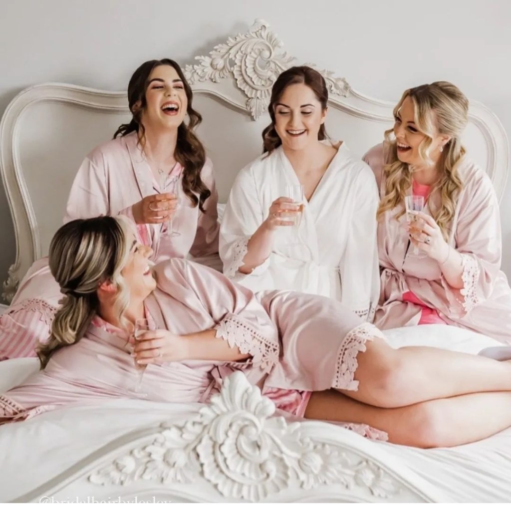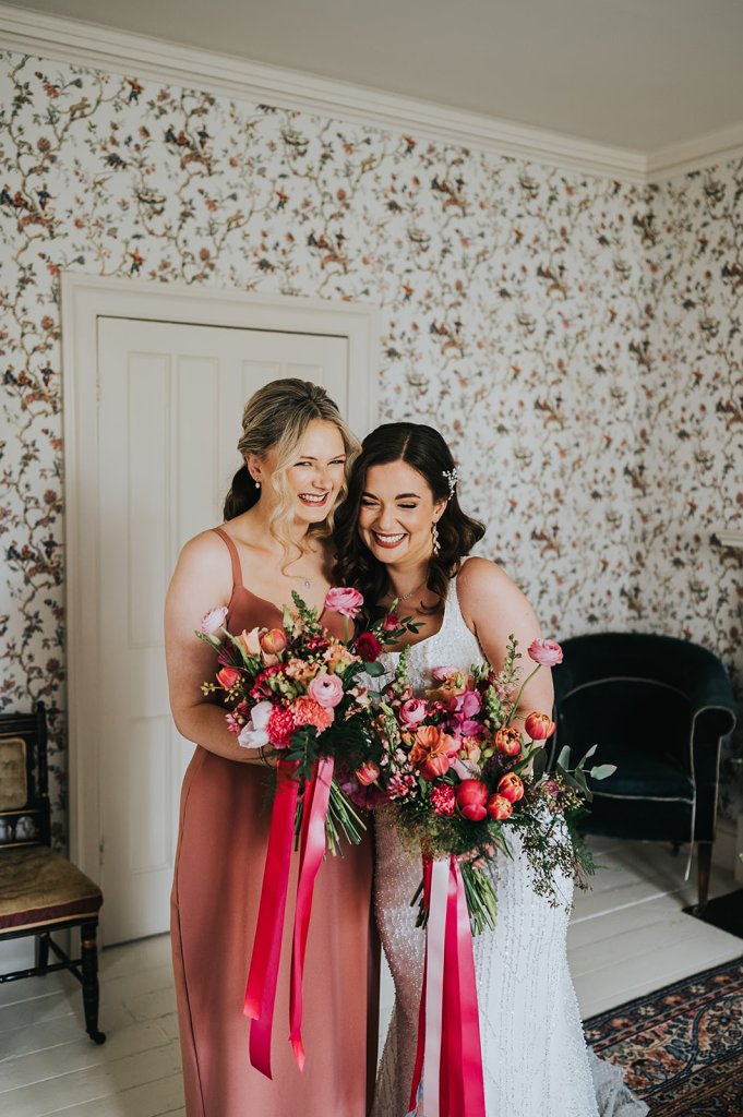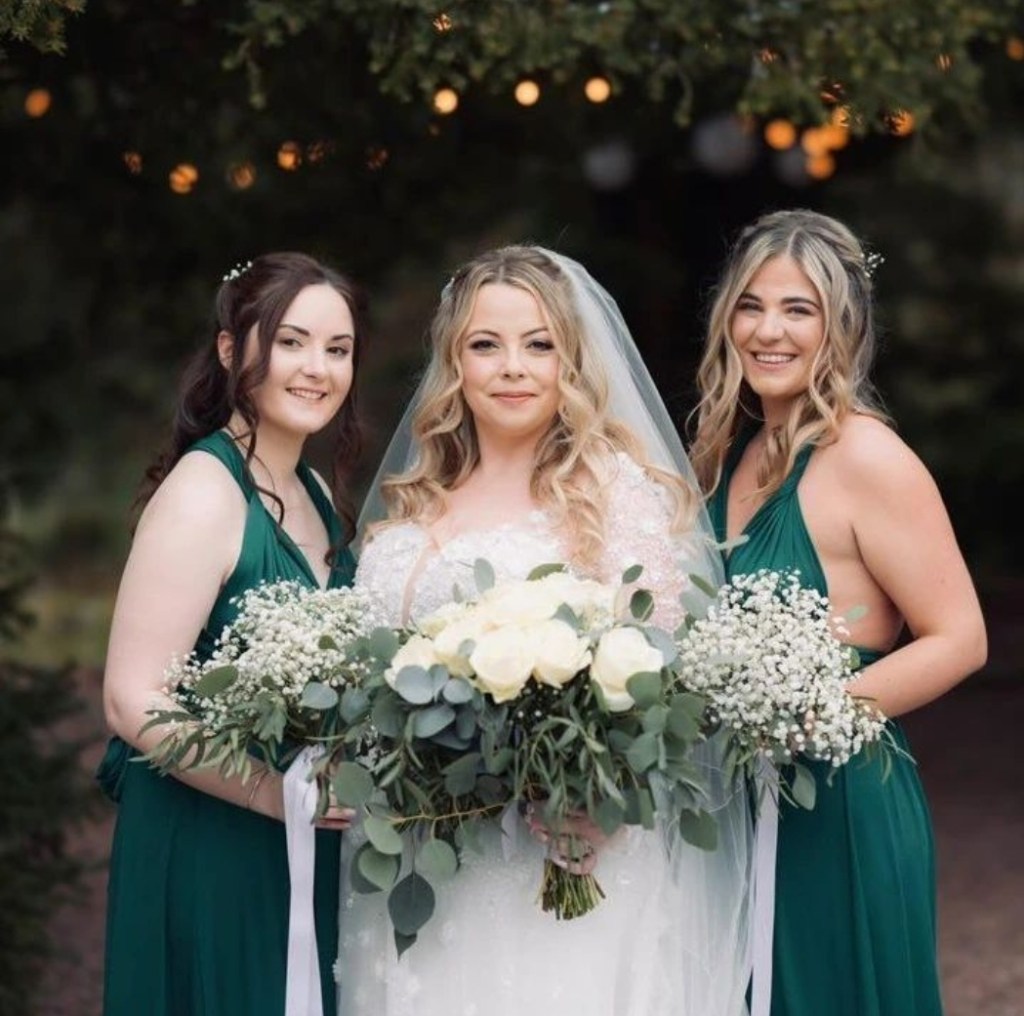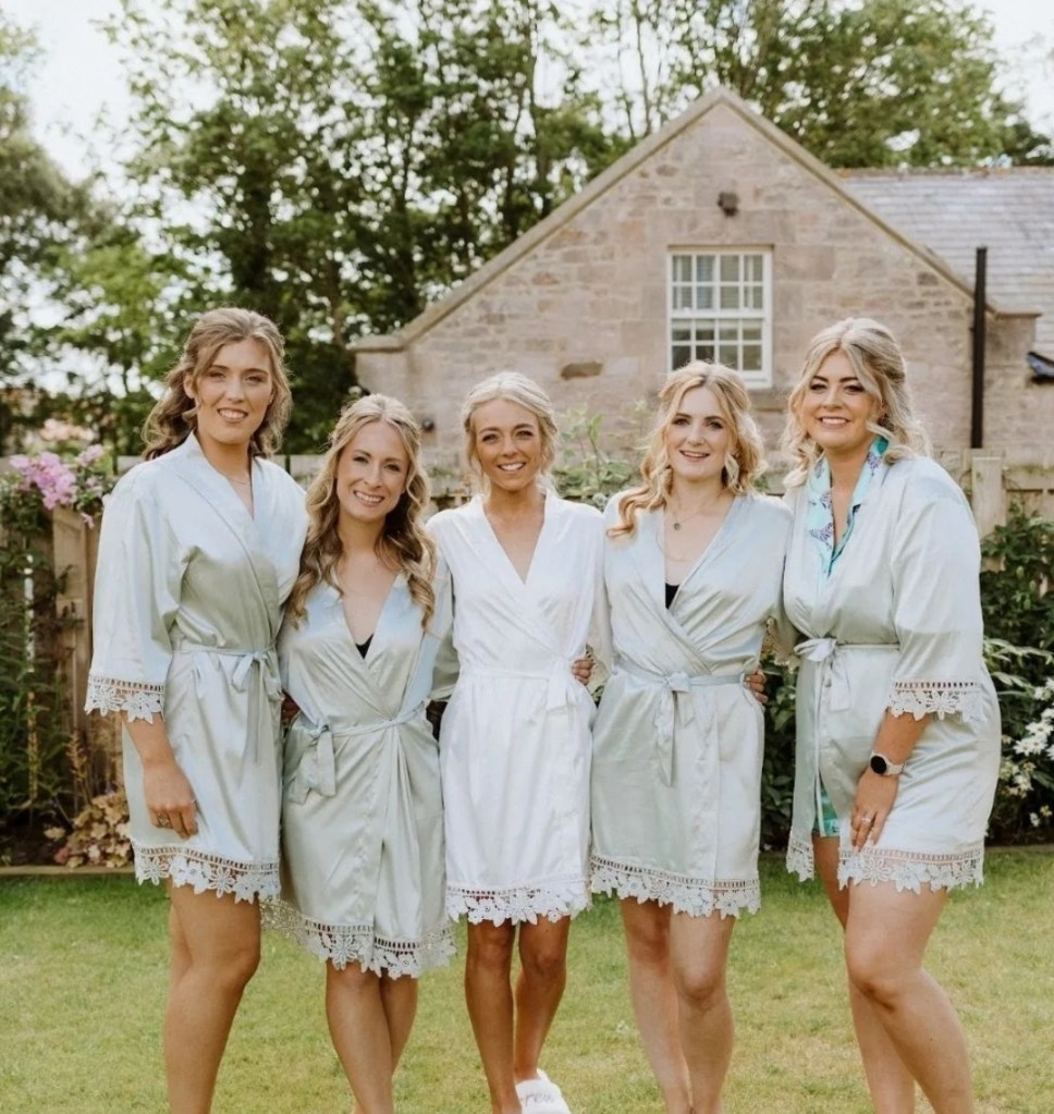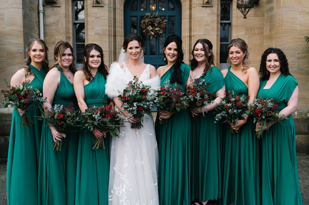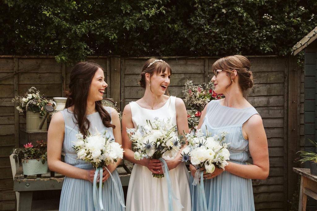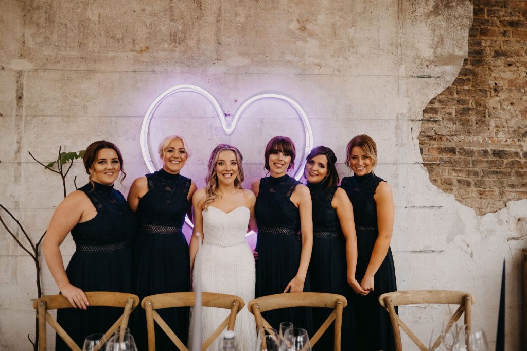 Bride Amy and the bridal party at Healey Barn. Photographer, Unscripted by Claire Batey.