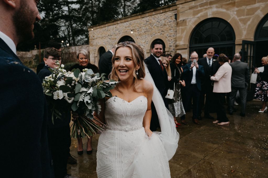 - Bride Rebecca at Healey Barn, Hair by Waves and Veil. Photography, SJ and Simon from the Smiths.